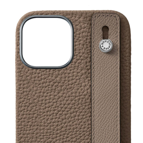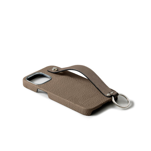 iPhone 15 Back Cover Case with Handle Shrink Leather (Etoupe - Silver)