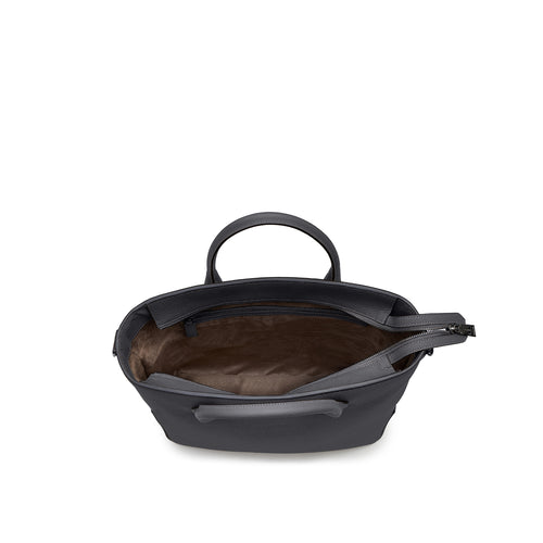 - A luxurious tote bag crafted with a single, generous piece of premium shrunken leather on one side.