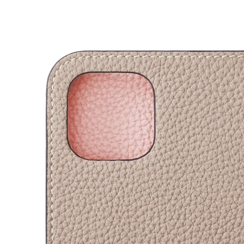 iPhone 14 Plus Diary Case Shrink Leather (Greige × Sakura Pink)