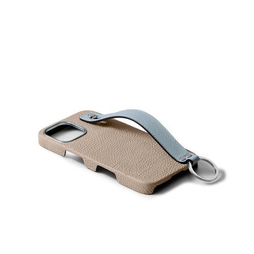 iPhone 16 Back Cover Case with Handle Shrink Leather (Greige × Blue Lin - Silver)
