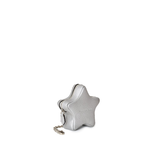 - A star-shaped mini pouch crafted from premium leather with an attached chain.