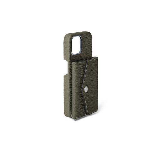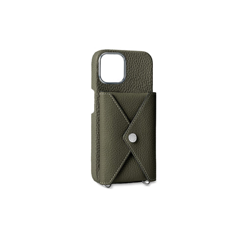 IPhone 15 Back Cover Hülle Çıtçıt Düğme Kapamalı Genarbtes Leder