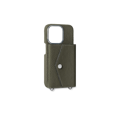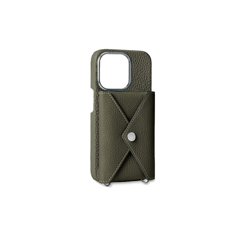 IPhone 15 Pro Back Cover Hülle Çıtçıt Düğme Kapamalı Genarbtes Leder
